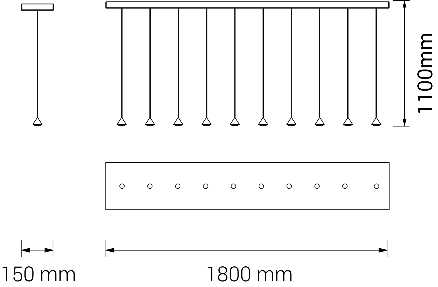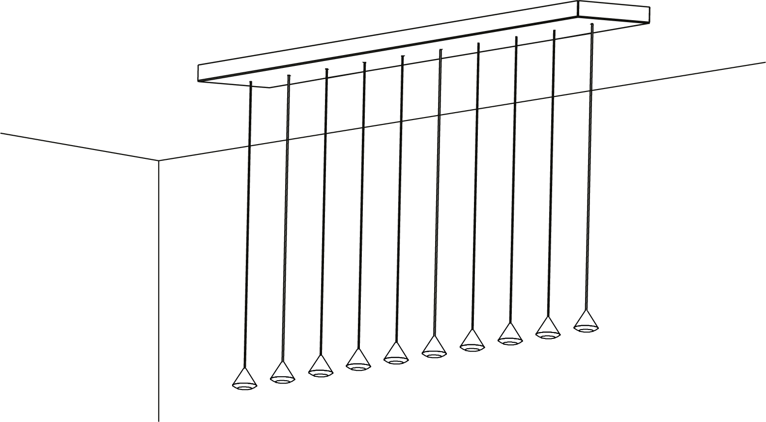 LED: 10x2 W | 350 mA | 3000K | CRI 90 3320 lm | 166 lm/W | > 50.000h | T 55°C ALIMENTATORE: 350mA | 220/240V | 50/60 Hz Dimmer elettronico: 0/10-1-10-PUSH