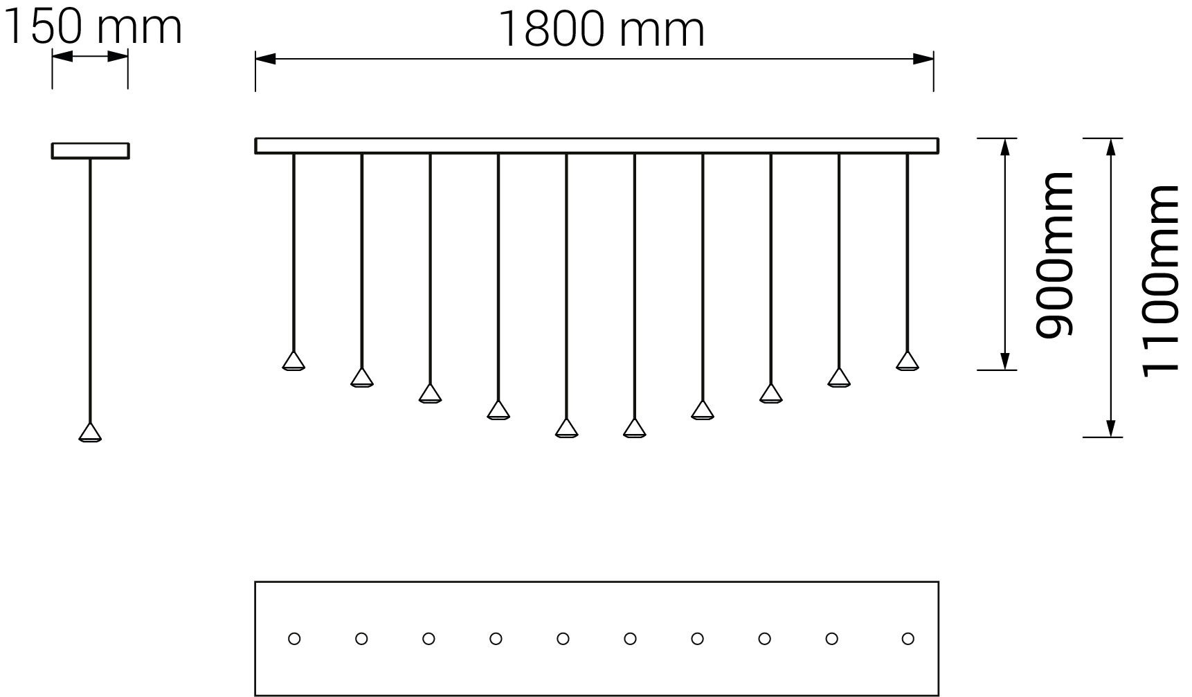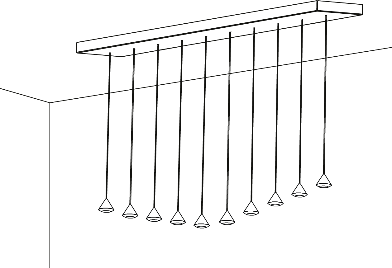 LED: 10x2 W | 350 mA | 3000K | CRI 90 3320 lm | 166 lm/W | > 50.000h | T 55°C ALIMENTATORE: 350mA | 220/240V | 50/60 Hz Dimmer elettronico: 0/10-1-10-PUSH