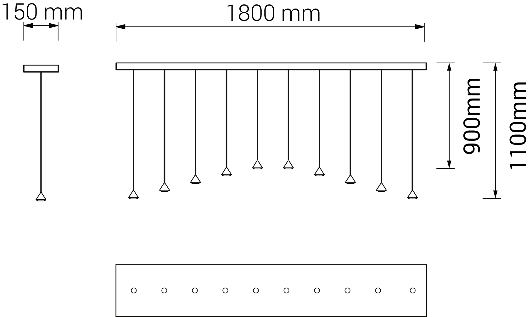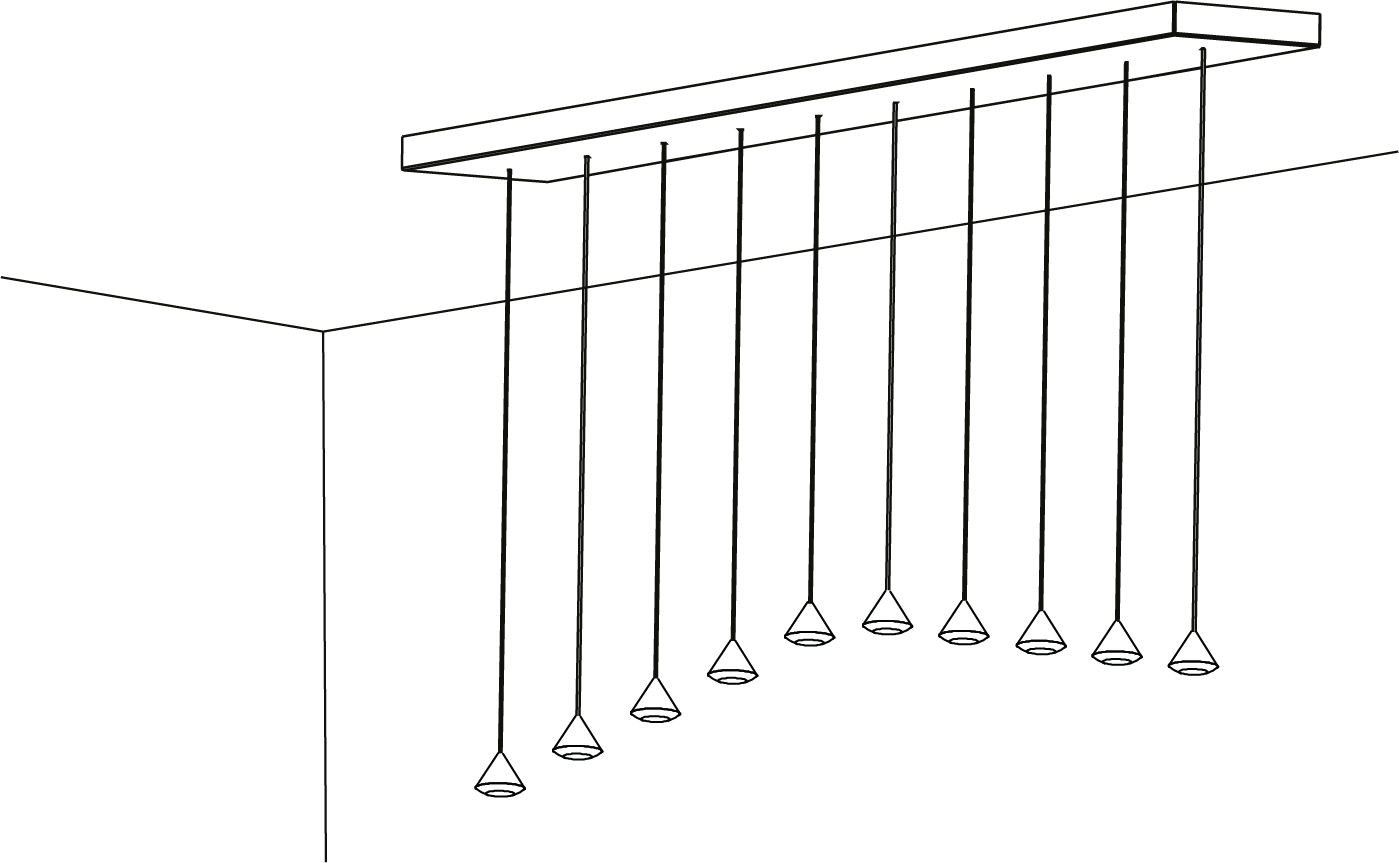 LED: 10x2 W | 350 mA | 3000K | CRI 90 3320 lm | 166 lm/W | > 50.000h | T 55°C ALIMENTATORE: 350mA | 220/240V | 50/60 Hz Dimmer elettronico: 0/10-1-10-PUSH