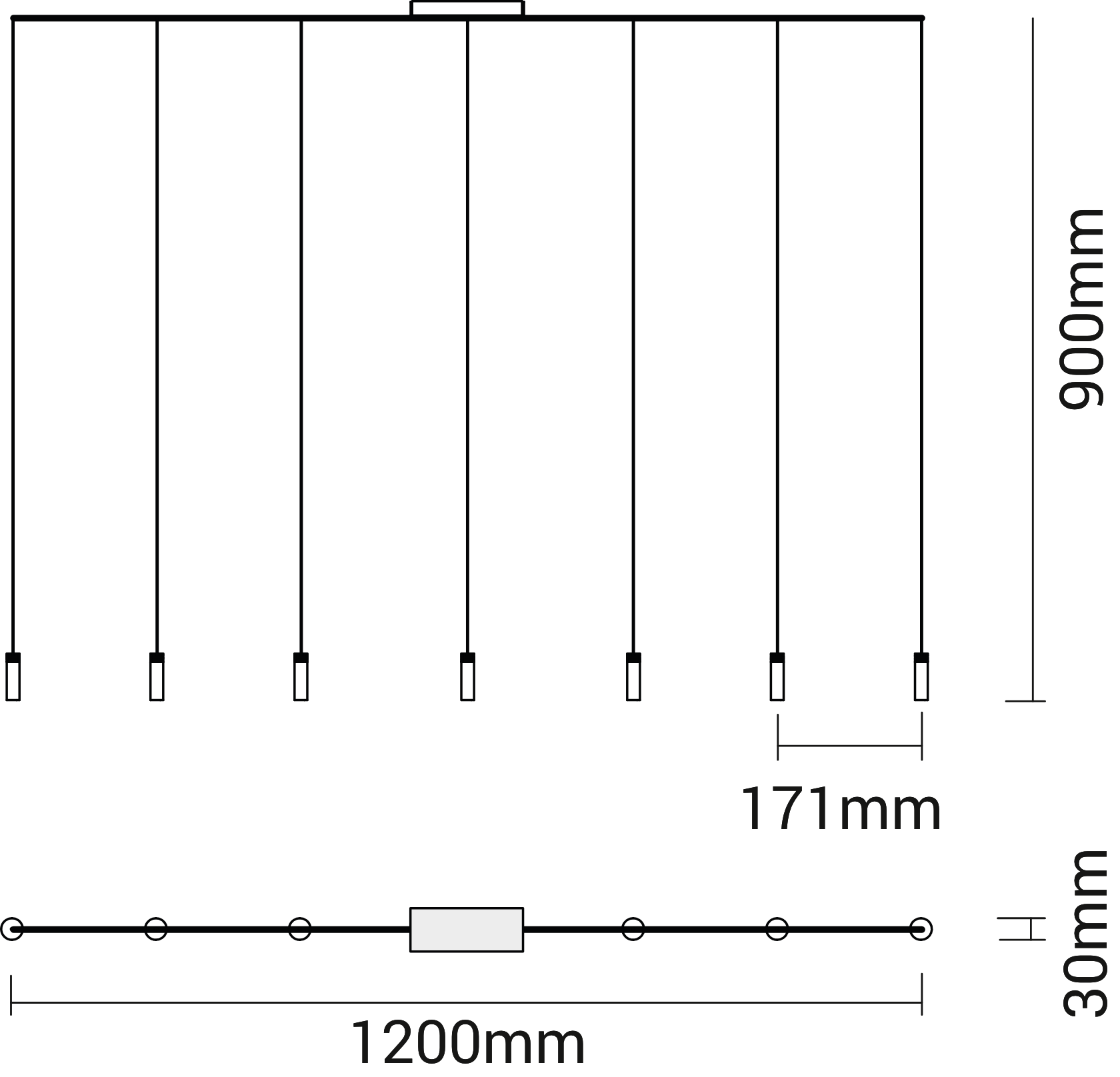 LED: 7x2 W | 350 mA | 3000K | CRI 90 2324 lm | 166 lm/W | > 50.000h | T 55°C ALIMENTATORE: 350mA | 220/240V | 50/60 Hz Dimmer elettronico: 0/10-1-10-PUSH