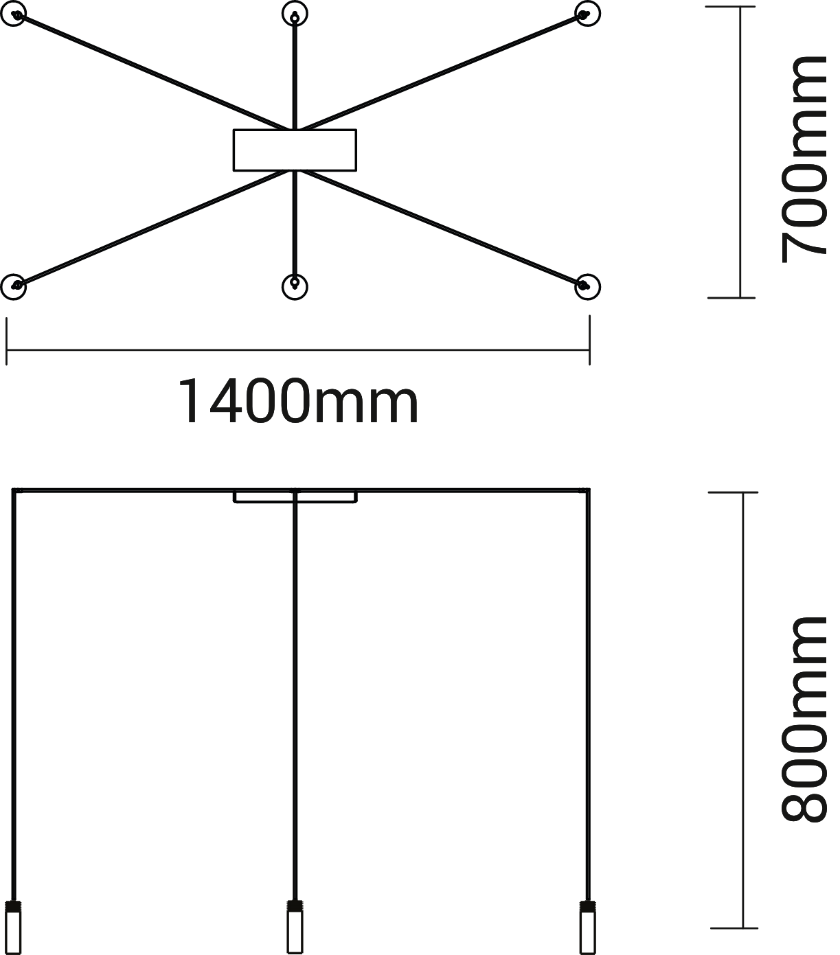 Fornita con n.6 bitte singole (KT002) Plafone a specchio (altre finiture su richiesta)