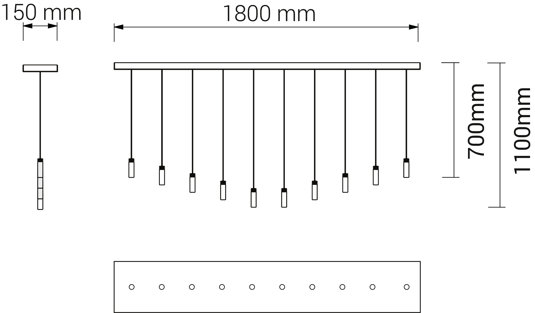 LED: 10x2 W | 350 mA | 3000K | CRI 90 3320 lm | 166 lm/W | > 50.000h | T 55°C ALIMENTATORE: 350mA 24 V 220/240V | 50/60 Hz Dimmer elettronico: 0/10-1-10-PUSH